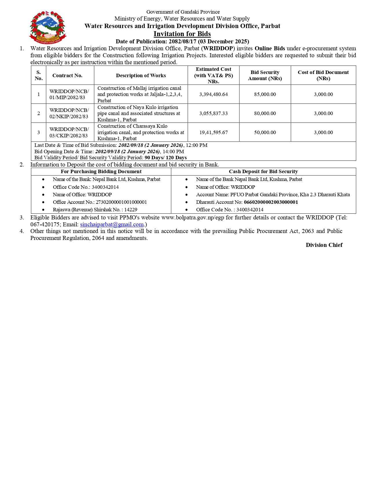 © सर्वाधिकार सुरक्षित जलस्रोत तथा सिंचाई विकास डिभिजन कार्यालय